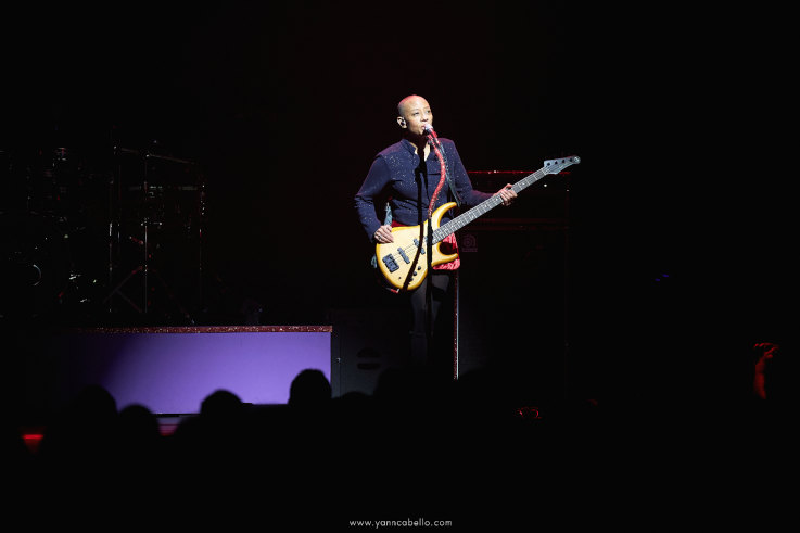 Et la musique dans tout ça ? Et bien elle est un peu perdue derrière l'égo de la star ! Heureusement, Gail Ann Dorsey est là, avec son jeu incroyable, sa voix magnifique et sa présence charismatique. Si j'étais mauvaise langue, je dirai qu'elle est là juste pour que l'homme aux paillettes puisse dire qu'il joue avec la bassiste de David Bowie... mais je ne le dirai pas. Les autres musiciens sont tous très bons, même s'ils ne servent que de faire-valoir à -M-... La set list est classique avec tous les tubes de la carrière déjà doublement décennale du monsieur. Les lumières, les costumes, les instruments ramènent dans les diverses périodes de la carrière.