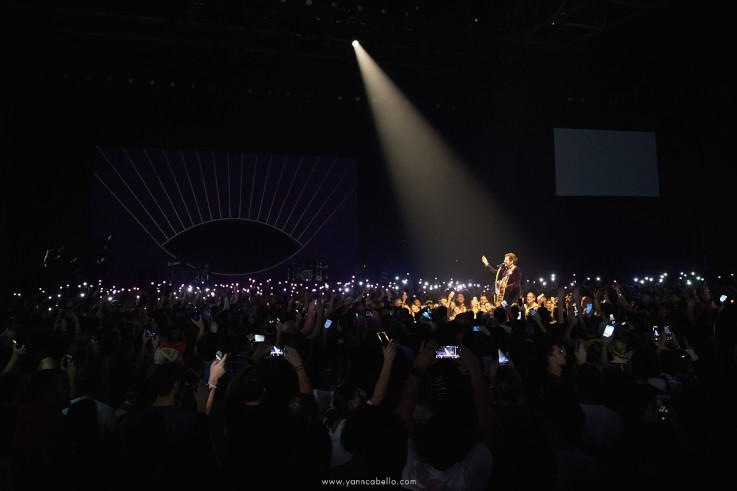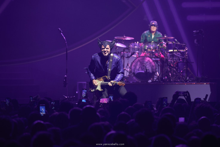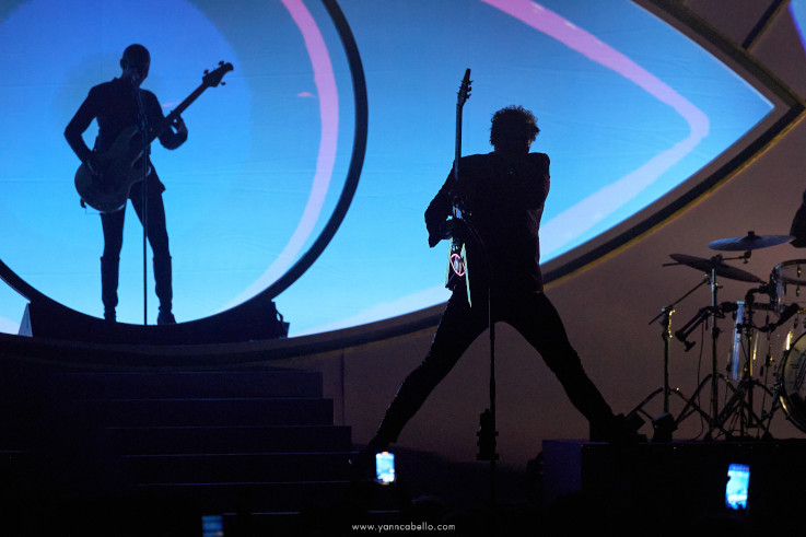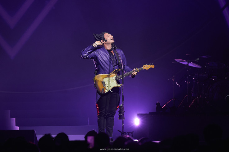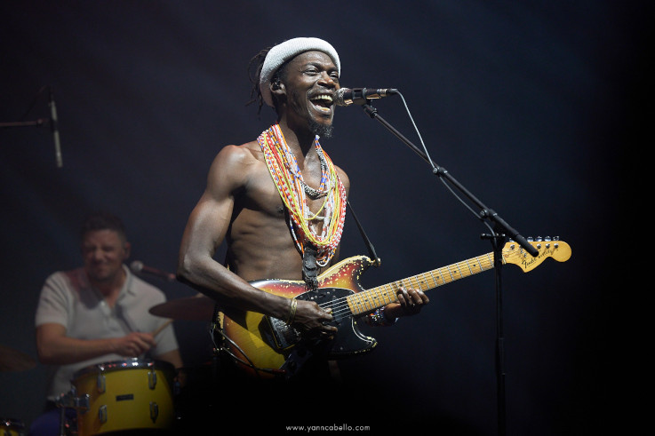 Le fils de Louis Chedid va faire son show avec tout les "gimmicks" habituels : poses avec la guitare, saut sur place lors des chorus, cris pendant les chansons "est-ce que ça va ?", "je vous entends pas", "oh ouii !", les changements de costumes, les chorus branletteux, les auto acclamations pendant de longues minutes au milieux de la foule, les montées d'enfants sur scène, l'invitation à un musiciens local... Bref, comme d'hab. Ça marche les premières fois, mais à force tout paraît fake, les ficelles, euh non, les cordes se voient trop. Pourtant ça marche auprès du public.