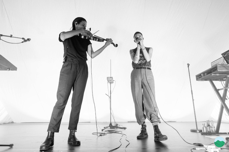 La suite s'avérera tout aussi convaincante, souvent dans un autre genre, avec beaucoup de titres électro vrillants, voire de la techno à danser en étant bien défoncé. La complicité hallucinante entre les deux musiciennes est quasi palpable, il y a beaucoup de sourires et d'attentions, ce qui est très beau à voir, en plus d'une fusion artistique à peine croyable, ce qui fait gravement tripper le public. D'ailleurs, avec les fans, c'est la communion totale : tout le monde est à fond, très enthousiaste, ça doit être un véritable bonheur de jouer dans ces conditions idylliques. Comme elle baigne dans cette ambiance très friendly, la grande maîtresse de cérémonie Rebeka s'autorise des petites interventions très franches et drôles. Sur le méga tube techno gothique "Auf Wierdersehen", extrait du dernier album du groupe, "Monument Ordinaire", la front woman de Mansfield.TYA se jette partout, semble kiffer sa life à mort et rallonge le titre à l'envi. Et à la fin, elle déclare tout sourire sous les vivas de la foule, "J'adore ce passage à la Kanye West, on va le refaire !" Et Bim, c'est reparti pour un tour...