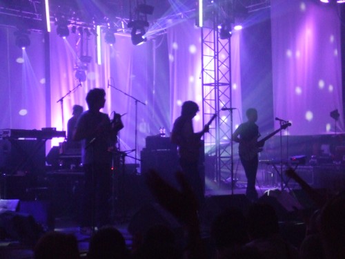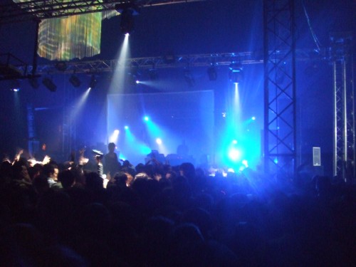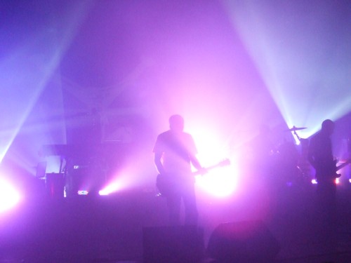 On commence avec le post-rock de Mogwaï et une première hallucination : il avait fallu se battre cet été pour ne serait-ce qu'entrer sous le chapiteau aux Eurockéennes (8000 places), et ici vu l'heure précoce (et le public plus électro), on arrive tranquille au troisième rang, sans forcer. Il est vrai que programmer ce groupe-ci, à cette heure-là et dans ce festival-ci, est assez incongru. Mais on ne va pas s'en plaindre, étant un grand fan, on se fout pas mal que le groupe commence devant une salle presque vide !