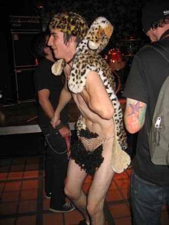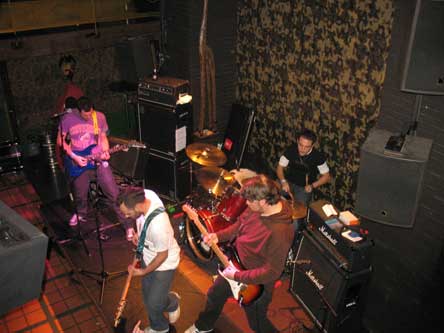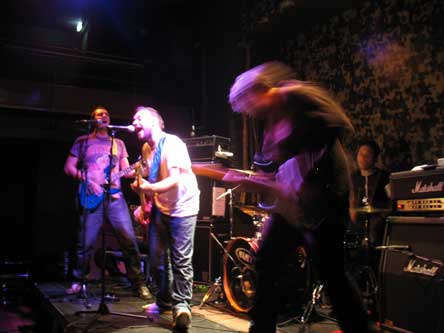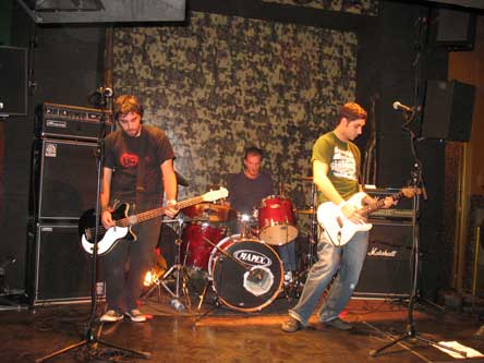 Trêve de blabla, venons-en aux hostilités : nous arrivons -le greffé du bob, Momo' et moi- durant le set des Menpenti, dans une salle correctement remplie pour un mardi soir. Beaucoup de gens au look "punk-rock", que je ne vois jamais dans les autres concerts, avec des noms moins glorieux que ceux sortis de chez Epitath Records... Je vais pas gueuler trop fort, c'est un coup à ne plus les faire revenir, vu à quel point leurs convictions semblent fragiles (ah ben zut, le coup est parti)...