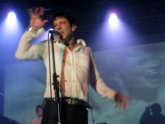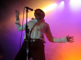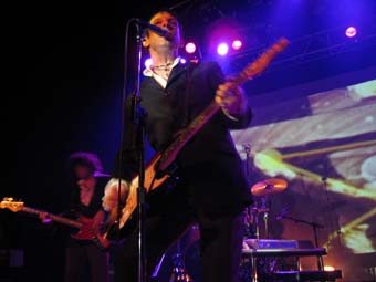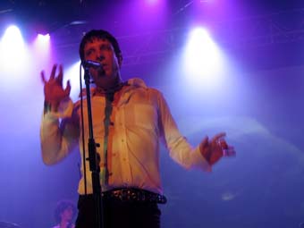 Par contre les quelques 2 ou 300 personnes qui sont venues savent parfaitement pourquoi : c'est un véritable triomphe qui est réservé à Jonathan Donahue et sa bande des Castkill Mountains, dès la première chanson, pourtant jouée dans un vacarme assourdissant. Ce chanteur on ne peut plus charismatique arborera donc tout le concert un grand sourire (peut-être légèrement cocaïné cela dit, enfin ne médisons pas), un sourire de plaisir d'être sur scène. Son côté maniéré est amusant au début, mais il est au fond tellement naturel qu'il peut même battre des ailes ou faire des entrechats sans qu'on trouve ça ridicule ! De plus il est véritablement habité par ses textes et ça, ce n'est jamais ridicule chez un chanteur !