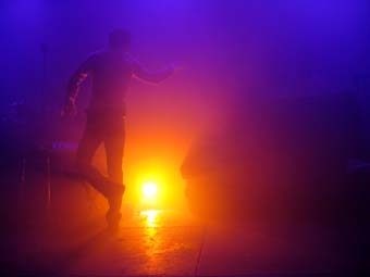 Il faut souligner un remarquable travail sur l'éclairage (comme en rendent compte les photos de Pirlouiiiit) : il y a par exemple eu un moment où, tout simplement, un coucher de soleil a été reconstitué (avec de la fumée, et un subtil mélange de spots violets, bleus, jaunes et oranges). Tout au long du concert les lumières sont soignées et correspondent parfaitement aux chansons (habituellement c'est un truc que je ne remarque même pas, c'est dire).
