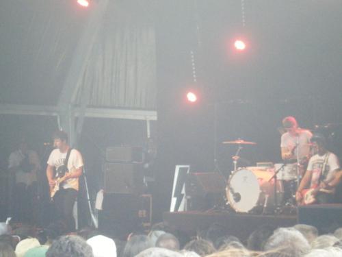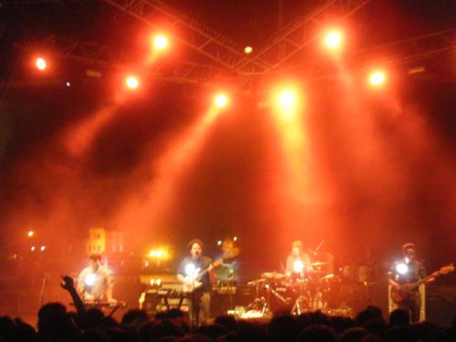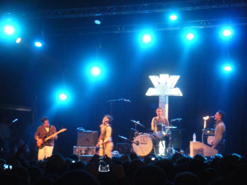 On ne fait que passer devant Beth Ditto qui reprend laborieusement des titres de Madonna ou de Queen avec un son très marqué 80's, pour rejoindre le très intrigant groupe Metronomy sur la plage - intrigant par ses compositions "poisseuses et entraînantes", pour citer un collègue, découvertes avec un premier effort Nights Out aussi horripilant qu'addictif... Départ sur l'assez tranquille Everything goes my way, avec un excellent groupe remanié : batteuse nonchalante mais précise (et chanteuse chic à ses heures), son de basse parfait, chanteur et guitariste au poil : voilà un groupe qui sonne, non de Zeus, quel contraste !