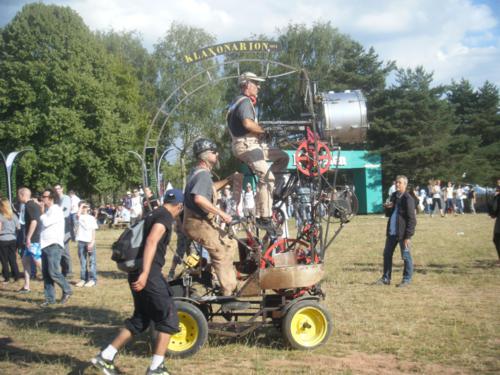 Mis à part la déco mochasse d'Heineken, cette nouvelle esplanade Green Room ouvre davantage la scène et permet de voir les concerts de plus loin, d'autant qu'on y a remis des écrans géants : elle est parfaite... par beau temps ! La scène installée sur le plan d'eau est magnifique et ouvre également davantage la vue, les pieds dans le sable, et avec un décor idyllique derrière. Seule étrangeté, une scène Loggia mal fichue pour son accès (beaucoup de temps perdu à chaque fois), à laquelle on est donc assez peu allés. A signaler aussi, des amusants musiciens ambulants, monomaniaques et en uniforme, qui nous ont accueillis dès la gare de Belfort, et divers animations comme le très drôle Klaxonarion, machine ambulante et klaxonnante actionnée par deux mécanos à l'air salace.