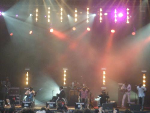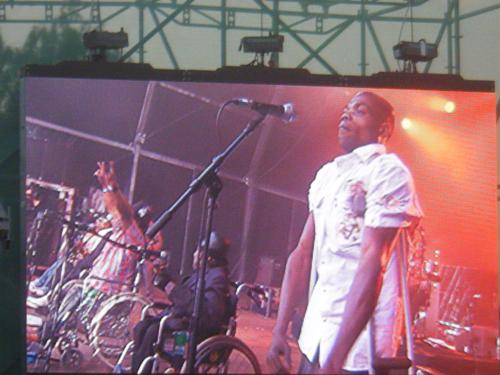 Si la sauce met quelques minutes à prendre, ils arrivent comme toujours à se mettre le public dans la poche, avec une montée en puissance : Moto Moindo, Je t'aime et la toujours très punchy Avramandole, qui fait trépigner toute l'esplanade, survolée quelques minutes par un drone mystérieux (espionnage d'un autre groupe peut-être ?), et traversée par Keziah Jones venu en voisin curieux. Avec Staff Benda Bilili et l'explosive Tonkara, le jeune Roger (qui joue toujours de son minimaliste instrument : boite de conserve, corde et tige en bois) et ses acolytes à mobilité pas vraiment réduite, font comme toujours valser les chaises roulantes, dansent par terre et se marrent comme des baleines : très grosse ambiance à la fin du concert !