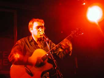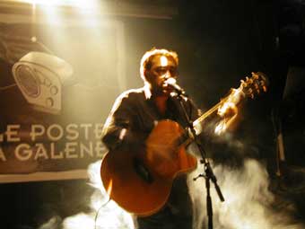 Après avoir un peu discuté, le concert de Miro a commencé. Sur la scène juste un micro, une guitare sèche et quelques pédales et ce gars pas très grand qui ressemble vraiment au dessin sur sa pochette de disque.