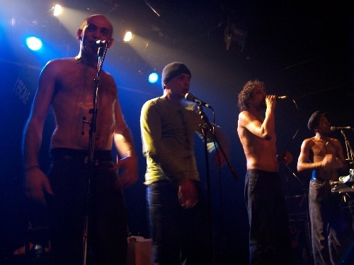Alors là ça change un peu quand même ils ne sont plus 4 sur scène mais 10 chanteurs, musiciens, danseurs, comédiens, enfin intermittents du spectacle dans tout ce que cela peut vouloir dire. C'est une invitation à la fête rien qu'avec leur nom on s'imagine (enfin pour mon cas perso) plein de bonnes sensations. J'ai vraiment apprécié ce groupe de part leur originalité en tout, ils nous amusent du début du concert à la fin par leur spectacle sur scène, leur "chorégraphie", oui oui ils dansent sur scène, ils ont même invité des gens du public à venir danser. Leur musique est festive, dansante mais rien du côté Punk "agressif", c'est tout le gentil et le festif de leur côté Punk qu'ils ont voulu faire ressortir.