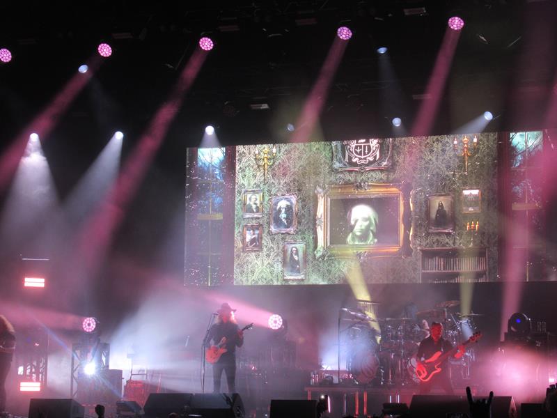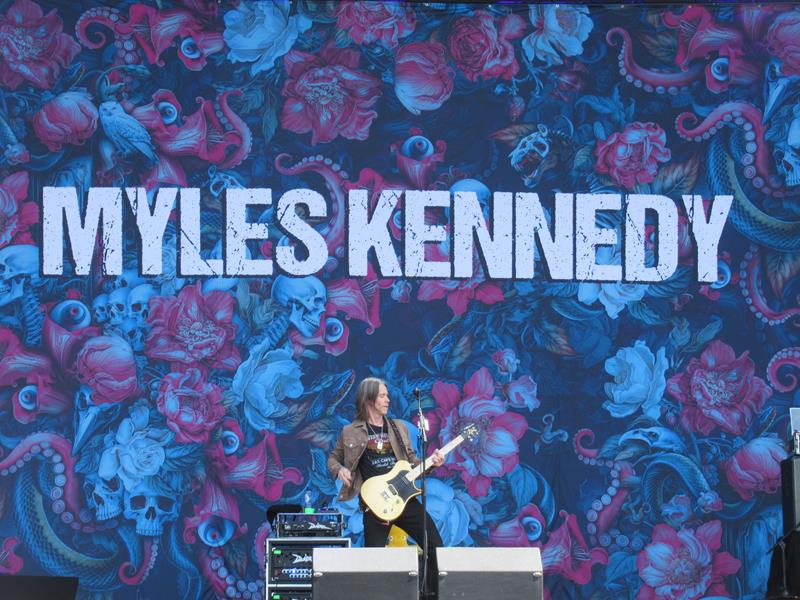 Moins intéressés, mais moins bousculés aussi par Myles Kennedy (mieux pour digérer donc), l'ex-chanteur de Slash, un beau gosse heavy rockeur à belle voix abrasive, qui joue aujourd'hui en trio sous son nom écrit en grand. Compositions groovy et complexes, un mec assez charismatique et plaisant à regarder : pas grand chose à lui reprocher à part son bassiste, ou plutôt le son dégueulasse de sa basse, qui gâche un peu tout le mix. Dans un autre style, même problème de son pas clair chez Windhand, du doom avec une dame au chant, assez radical et pas très fun. Pas aimé non plus (mauvaise série, décidément), les stoners de Green Lung, avec leur déco atroce et leur son cassant les oreilles (effet Marquee ?) mais surtout, lorgnant bien trop vers le hard FM...