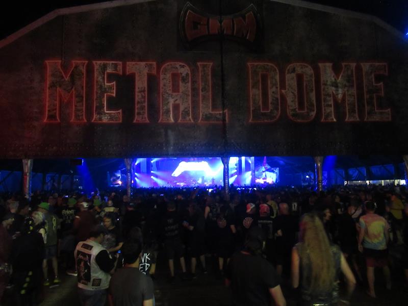 Naïvement, on a cru pouvoir gagner le Metaldome, prendre une bière au passage et aller écouter gentiment Meatallica, qui comme son nom l'indique sonne, disons à 90 % comme Metallica. En fait il faudra quand même mouiller le maillot pour réussir à s'avancer jusqu'à eux, et profiter de ce joyeux moment (un seul d'entre nous ne les a jamais vus... moi j'ai presque perdu le compte depuis la reformation à Arras en 2008). Etonnamment, la promesse d'entendre Metallica en live attire du monde !... Commençant avec The Ecstasy of Gold comme il se doit, le groupe n'oublie aucun des plus grands tubes (Master of Puppets, For Whom the Bell tolls), tout en passant par certains plus inattendus (Disposable Heroes, Back to the Front). Bah, on serait volontiers restés plus d'une heure avec eux, c'est du bien bel artisanat, achevé par l'inévitable Enter Sandman !