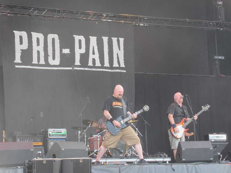 Plus concernés nous serons par Pro-Pain, punk hardcore de 1991 (enfin punk sans cheveux hein, pour ceux d'origine : du temps est passé !), au moins aussi brutal que les Hatebreed d'hier. Très efficace, très méchant, son hyper carré, batterie au cordeau. Grosse ambiance avec des festivaliers qui pètent la forme en ce début de journée : entraînés comme des idiots on court même un peu dans un circle pit, alors qu'on est encore en pleine séquence postprandiale - ouch, c'est à la fois sportif et plus douloureux qu'on l'imaginait ! Mais c'est une belle fête comme les adorent les aficionados de la scène Warzone, là-bas outre-Quiévrain.... Et avec le titre Deathwish, en effet, c'est la guerre dans la fosse ! Même si sur la longueur ce n'est pas super varié, comme souvent, ils sont assurément parmi les meilleurs qu'on ait vus dans ce style (ex-aequo avec Madball).