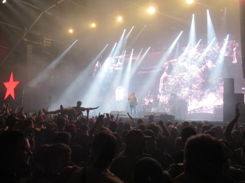 Evidemment avec le principe (très positif par ailleurs) de la visibilité croisée des mainstages, placés pour notre gros focus du week-end, il va d'abord falloir se farcir la moitié de ces putain de Korn. Bon, on déteste totalement ce groupe, alors on nous permettra de passer vite : il n'y aurait que des coups à prendre à vouloir expliquer pourquoi, et le reste du public les adore, lui (comme dirait l'autre : il est bien le seul !). On note en tout cas qu'on a pu agréablement s'approcher aussi près qu'on le voulait, et sans galérer. Leur musique nous en touche toujours une sans bouger l'autre, mais au moins cette fois, elle ne nous a pas particulièrement horripilé. Allez, salut ! Ils sont de toutes façons dans un festival metal sur deux, en moyenne...