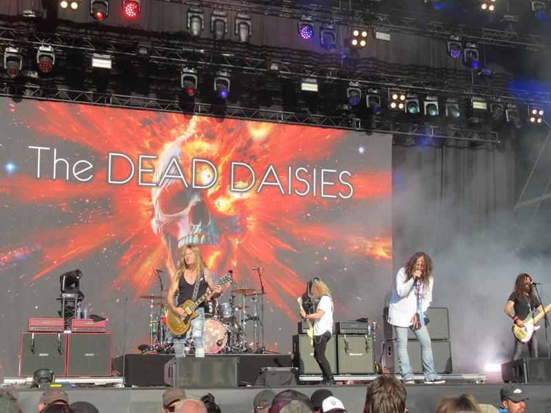 Autre sous-genre qui prend de l'ampleur, les super-groupes composés de rockeurs burinés issus d'autres formations, qui reprennent en les jouant fort, des standards blues ou rock (sur le modèle de Hollywood Vampires), en mode juke-box, tout en glissant certaines compositions personnelles du même tonneau. The Dead Daisies est bien dans cette ligne, avec un son heavy rock un peu daté mais qui fait tellement plaisir à entendre en live, et surtout un esprit joyeusement rock'nroll (Dead and Gone) autant que festif (Mexico). On imagine volontiers que leur mode de vie ne doit pas être totalement clean de substances euphorisantes, mais ils ont plutôt bonne mine en cette fin d'aprème, pour des petites fleurs soi-disant crevées ! Côté reprise, leur groupe nous comble de joie en reprenant Fortunate Son sous stéroïdes, puis un absolument tuant Helter Skelter ! Comme quoi le bonheur, c'est parfois simple comme une Gibson SG blanche...