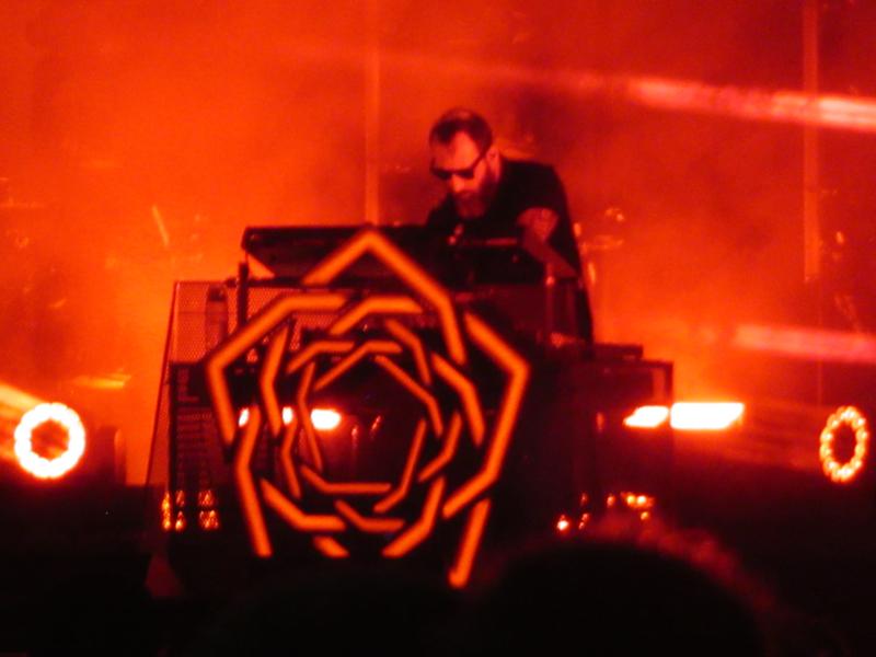 Après avoir pu observer de loin la fin de, euh, Within Temptation, c'est ça ? On confond un peu tous ces groupes de metal melodique emmenés par une jolie cantatrice ... On est là et chaud-patates pour notre dernier rendez-vous cette année, et le troisième avec Carpenter Brut ! Deux minuscules regrets : il n'utilise plus ses vidéos hilarantes et tordues d'origine ("Comment détecter si votre adolescent écoute du metal ?"), et il ne jouera aucun titre de la (fantastique) B.O.F. du navet Blood Machines - on s'était pourtant formellement engagé à danser cul-nu s'il le faisait : on peut le regretter... ou pas.