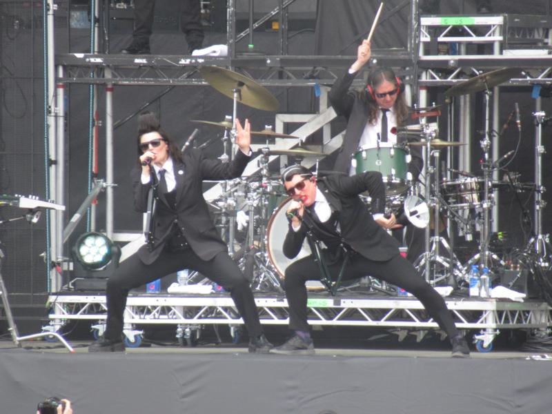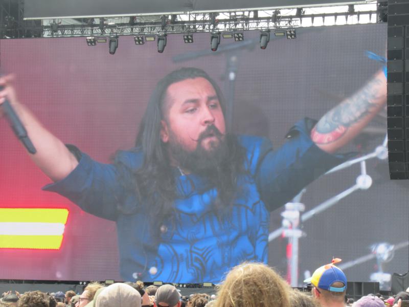 On enchaîne sans se désespérer avec Black Flag, un groupe de punk hardcore théoriquement mythique dans son genre mais qu'on ne connaît pas. Problème, il n'y a qu'un mec sur scène qui a l'âge d'avoir, peut-être, été là en 1976 : ce n'est plus un groupe, mais une franchise ! Dont d'anciens membres ont d'ailleurs bastonné pour récupérer le nom... Le chanteur actuel est une grosse bête qui sonne bien par ailleurs mais du coup, quel intérêt ? On a quand même du mal avec ce principe de remplacement de tout le personnel, et on ne s'attardera pas. Arrivé à la scène Temple, on entend la fin de Voivod, théoriquement thrash metal expérimental et qui paraît vraiment très étrange - pas très musical, pas forcément rythmique non plus, mais on certes a pu passer à côté...