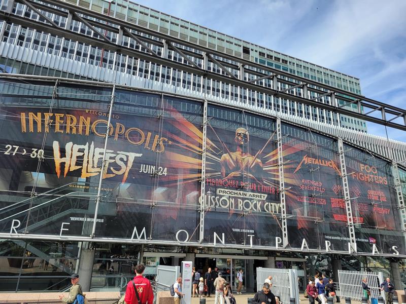 Pour tester notre sang-froid, la SNCF a coupé net et en plein milieu notre périple vers ce Hellfest 2024, avec une bonne blague : gare de Marnes-la-Vallée évacuée, puis train pour Nantes supprimé - le seul du tableau ! Pas d'autre train avant des heures et de toutes façons plus aucune place disponible ce jour-là... Gargl. Lost in translation... Qu'à cela ne tienne, après un bref instant de panique, on a sauté dans le RER vers Paris et au moins, on aura vu la Gare Montparnasse floquée aux couleurs du Hellfest - ce qui est notoirement plus joli que l'entrée de Disneyland ! Heureusement pour nous que pour les autres festivaliers ce vendredi était déjà le jour 2, sinon on y serait sans doute encore...