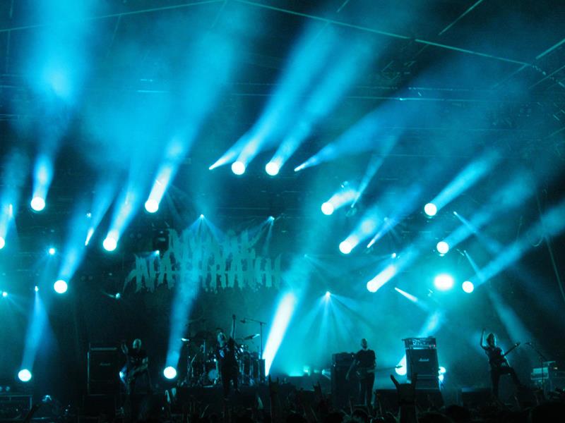 Sur le créneau suivant, outre qu'on fatigue un peu, des noms connus mais pas des groupes qu'on aurait dans notre ADN (rappelons qu'en plus on a pas eu le temps de réviser) : Biohazard sonne bof-bof à l'oreille, on se décide plutôt pour les très attendus (mais pas de nous) Machine Head. On écoute ça de loin, flemme de s'approcher ; il y a souvent un groove très puissant sur voix growlée (qui n'est pas sans rappeler Pantera), mais pas forcément un son qui nous fascinerait plus que ça. Ils déroulent et ont formé un énorme moulon très agité devant leur scène ; il faut reconnaître que leur tube Choke on the ashes of your hate fait l'effet d'un cassage de gueule en règle, mais au bout d'un moment c'est trop peu mélodique pour nous. Et quand ça l'est davantage (Locust), c'est le chant en voix claire qui nous gène... Bref, pas fan.