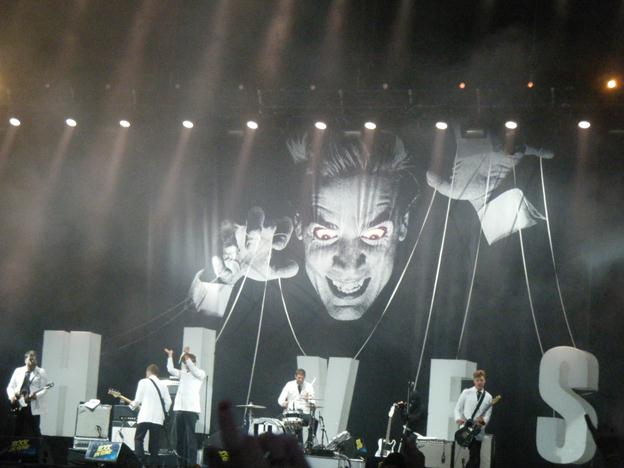 Reste qu'on attend toujours encore le groupe qui va enfin nous rendre dingues aujourd'hui... Mais sans inquiétude particulière puisque The Hives est au programme, avec son merveilleux frontman, le beau, le sexy, le dingue, en somme l'inénarrable Howlin'Pelle "Je suis Suédoise !" Almqvist, qu'on a toujours adoré voir et revoir en concert ! Après 4 rendez-vous jamais décevants en haut-de-forme, en marinière, etc, on envie les plus jeunes qui ont la chance de découvrir son abattage formidable, son groupe de Droogs exorbités aux noms improbables, aujourd'hui vêtus de costards blancs, et leurs putain de tubes, qui semblent allier le classicisme pétillant des Beatles à l'énergie sauvage des Sex Pistols. Bien évidemment il ne leur faut même pas 30 secondes de Come On pour réveiller la bête qui sommeille en chaque festivalier !