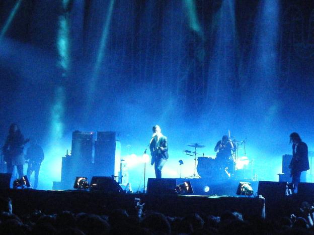 Et la plus grosse déception aussi ! On a dit assez de bien d'eux sur ce site, disques et concerts confondus, pour pouvoir affirmer que les Arctic Monkeys - en tout cas leur leader bien gominé - n'étaient vraiment pas dedans aujourd'hui. Avouons d'abord que leurs deux derniers albums, un peu trop formatés pour les USA (Josh Homme y a mis la patte, mais pas son génie...), perdent la fraîcheur toute britannique que nous avions initialement adoré chez eux... Cela étant leur concert de 2011 ici-même, tournée précédente, a laissé de bien meilleurs souvenirs que ce vendredi, où le brave Alex Turner semblait en pilotage automatique, peut-être suite à un ou plusieurs abus de substances diverses ? Ou alors pour en garder sous la pédale avant deux autres dates en Albion, bien plus stratégiques pour eux (syndrôme du week-end Paris + Leeds & Reading) ?