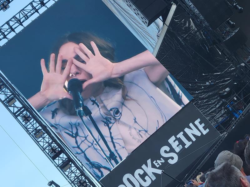 Mémorable concert de PJ Harvey en tête d'affiche sur la grande scène du festival Rock en Seine, dans le toujours très agréable parc de Saint-Cloud... Dès son apparition... La suite