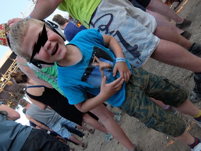 Et surtout, un show participatif où tout un chacun doit se baisser, crier, clapper ses hands, et où les plus motivés peuvent aussi porter le chanteur (qui est déjà debout sur le public au 2e titre !), puis le guitariste, voire faire à sa demande un circle pit en courant autour de la tour-son... idéal pour celles et ceux qui ont un excédent de bière à faire descendre. Pour finir le petit rouquin s'excuse de ne pas pouvoir jouer plus longtemps, au risque de se consumer, lui et sa peau d'irlandoche rose, tout comme un vampire... Avant de dédicacer le dernier morceau à la personne que nous haïssons le plus au monde - en nous suggérant Theresa May et Donald Trump, si jamais on a besoin d'idées. "This is not a love song", indeed... mais what a cool gig ! Notre enfant en a d'ailleurs apprécié le premier tiers et supporté le deuxième, dans l'espoir (déçu cette fois) de se faire filmer par la caméra-grue comme l'an passé. Damned, on était pourtant pile en dessous... Mais savoir se faire voir, c'est un métier !