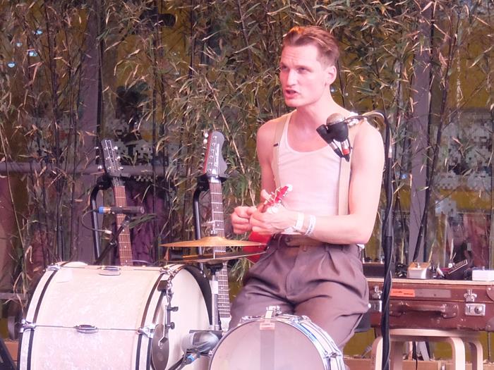 A vrai dire le Suédois, moins habillé que d'habitude - c'est à dire pieds nus et en marcel plutôt qu'en chaussettes et complet-veston - déroule une setlist assez semblable à notre souvenir (à l'exception de son tubesque Ain't No Grave, sauté cette fois hélas). Son blues habité, parfois hanté ... et parfois presque joyeux (par exemple sur un passage très Son House, joué à l'ukulele, la classe), est parfait pour ambiancer un patio foutrement agréable. La performance et la magnétisme naturel du gaillard s'avèrent suffisamment intéressantes pour scotcher les enfants placés devant lui, même s'il n'y a pas d'interactions particulières avec eux. On ne peut pas demander non plus à Buster Keaton de devenir soudainement Bozo le Clown... N'empêche que le gars Bror Gunnar, recroisé plus tard sur le site et avec qui on a papoté quelques instants, est tout à fait sympathique - Joshua et lui se claqueront même un "gimme five !" joyeux. Vive le blues suédois !