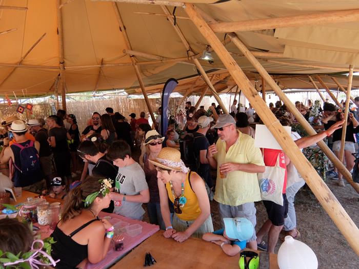 Rien n'a changé ici ! Programmation au poil, jauge raisonnable, accueil sympa, cadre quasiment idyllique et créativité des sides attractions (y compris pour les kids - confection de collier de bonbons, instruments bricolo électro-zarbis, console de jeux où l'on joue avec une fourchette et une cuiller, etc etc), pour les grands un choix très correct de bières (Grim ambrée en pression ? super !) et une qualité constante de la nourriture (cette année il y a même des glaces - à cause de nos menaces amicales de l'an passé ?). On en a déjà fait des tartines sur de précédentes chroniques pour expliquer tout le bien qu'on pensait du plus grand des petits festivals, les liens sont en bas de page, si besoin ! Petite nouveauté, trois vraies scènes dehors - à vrai dire notre petit programme du jour ne nous amènera pas vraiment dedans, et notamment pas dans la "huuuuuge venue", en tout cas pour cette fois.