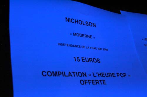 Il est à nous de rappeler que le concert lançait la sortie de leur premier album "Moderne" sous le label "les Chroniques Sonores" dont Nicolas est également le boss (on aime ces musiciens rebelles (peut-être par la force des choses!) qui n'hésitent pas dans la création pour affirmer leur passion communicative). Et comme un bonheur n'arrive jamais seul, l'album (en vente à la FNAC (et oui!) à partir du 18 avril sera accompagné de la compil "L'heure pop" du même label (pas possible!).