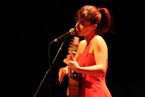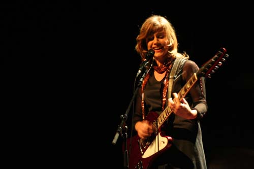 Chaussures vernies et écharpe porte-bonheur reine du dancefloor, elle avoue être morte de trouille. Ce soir elle présente surtout des nouvelles chansons et tout ça se prête toujours aussi bien au lieu.