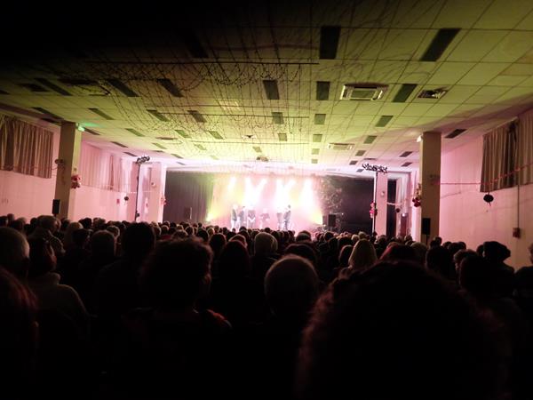 D'autres personnages comme Adam et Eve, et leur paradis terrestre (où s'ébattent les oiseaux d'alors : archéoptéryx, vélociraptor, tricératops... et pneumothorax bien sûr), ou le minot Jèsu lui-même ne sont pas en reste, et il est aussi fait allusion en passant à un bordel qui aurait pignon sur rue à Mallemort, ou à ces êtres étranges qu'on trouve juste à côté, à Charleval... Mais si lou Théron ne fait pas mystère de sa probable mécréance, c'est qu'il (et de tout son c(h)oeur encore), visite par ailleurs avec tendresse un répertoire (à peu près) de Noël luxuriant et où, prouesse quand même pour un langage où je n'entends personnellement quedalle, on ne s'ennuie pas un instant ! La "sètalista" est en bas de chronique, pour qui en saurait davantage sur le sujet... Ajoutons que sons et lumières étaient très beaux mais que, immobilisé par mon niston (qui a roupillé sur mes genoux à peu près du troisième au tout dernier morceau), je n'ai pas pu faire de miracles avec mon appareil photo depuis le fond...