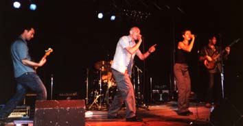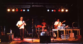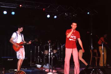 En bas IFQ déguisés comme tout bon groupe de funk ska qui se respecte. un bassiste pieds nus, un chanteur torse nu avec cravate et béret rose. De l'énergie, beaucoup de mouvement qui leur donnait un léger avantage par rapport aux autres groupes, mais musicalement et surtout au niveau du chant dans mon souvenir ça ne cassait pas des briques (sans méchanceté)
