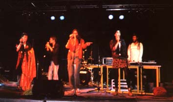 Je suis ensuite redescendu où avaient attaqué les MOUNINES. Oh surprise il s'agissait des quatre filles (un peu plus âgées que la moyenne des deux autres groupes) qui étaient intervenues sur le TIPI pendant le set de Massilia Sound System aux Docks. Autant cette première fois ne m'avait pas totalement convaincu, autant ce coup ci j'ai été véritablement impressionné. Elles abordent des sujets graves dans leurs chansons sans pour autant délaisser la forme. Je m'explique avec un ragga minimaliste (comme Masillia) elles ont enchaîné quelques morceaux sur le SIDA absolument époustouflants. Le Preso Féminin, Cela fait 15 ans que je me fais du mauvais sang contaminé, le Tipi, ... des textes militants, vécus, et touchant. Sans apitoiement, ...Sans vouloir dire de bêtises, le Tipi est une association marseillaise qui aident les gens et les tiens informés avec comme combat de fond Sida, drogue et compagnie.