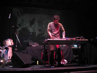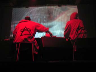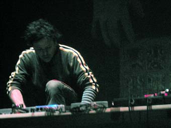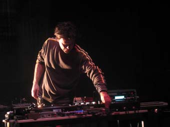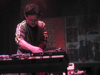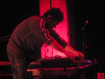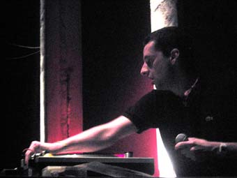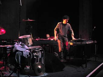Vers le milieu du set de Erik M je me suis finalement approché du devant de la scène pour voir que celui-ci n'avait rien perdu de sa fougue ni e son côté expérimental. J'ai eu un peu la même impression que lors du Festival Mimi 2001.