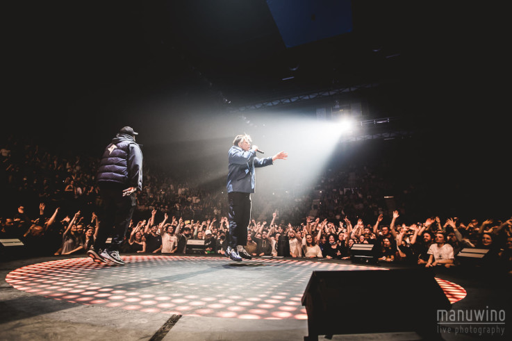 Baise le monde non chanté en entier est également intéressant sous ses airs de pas y toucher. Bel instant karaoké sur Seul avec du monde autour où on se rend bien compte que sous ses airs désinvolte, Aurélien a quand même un sacré débit car ça n'est pas évident de tout chanter aussi rapidement. Le medley des anciens titres met en valeur ses talents de punchliner et son flow vraiment impressionnant. Peut être dommage qu'il n'y ait pas eu plus de titres anciens joués en entier, notamment Suicide social ou Raelsan, mais c'est le jeu de la promotion du nouvel album.