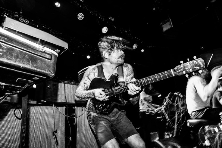 John Dwyer suinte de sa néo-moustache, grimaçant et provocateur, le duo de batteurs Dan Rincon/Paul Quattrone fait voler les éclats de bois, le bassiste Tim Hellman - en short et pieds nus - dégouline avec sérieux. Seul le nouvel élément du groupe, Tomas Dolas, qui s'occupe des machines, conservera sa prestance d'origine.