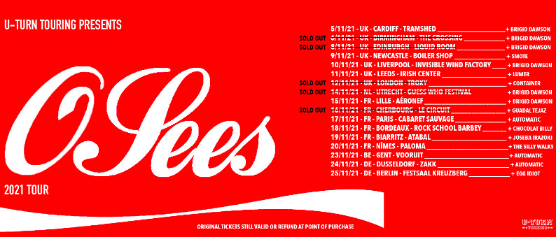 17 novembre 2021, après deux reports (ou plus, on a arrêté de compter), nos Américains préférés Osees font leur grand retour au Cabaret Sauvage, pour une prestation tout aussi sauvage, pour le plus grand bonheur d'une salle annoncée plusieurs fois complète (puis non, puis si, puis non, puis finalement si). En ouverture, Automatic, trio post-punk également domicilié à Los Angeles, dont il nous sera difficile de décrire la prestation, puisqu'à notre arrivée Osees prenait place sur scène. 20H30, Ephad time.