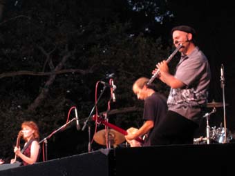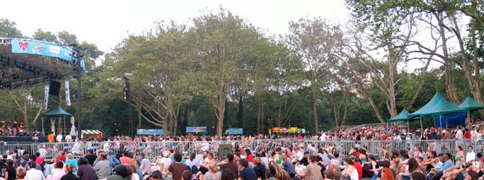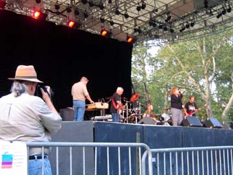 J'arrive un peu avant 19h30 (heure officielle du depart) ... passe avec mauvais consicence devant les urnes chargees de recolter des fonds pour ce Festival gratuit hallucinant ou j'ai quand meme pu voir Johnny Winter, Jimmy Cliff, Sonny Rollins, Tindersticks, Susheela Raman et bien d'autres ... et ou j'en ai rate bien plus encore ... le par terre est deja noir de monde ... je m'approche un peu du devant de la scene, ou je croise les meme photographes accredites que l'annee derniere et ou je me fait refouler gentillement par les meme videurs que les autres annees ...