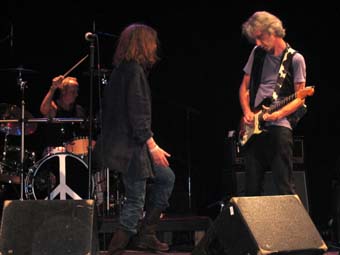 Au niveau des musiciens qui l'accompagnent un petit changement dans le line-up. Outre Lenny Kay, son batteur Jay Dee Daugherty (avec sa batterie au signe peace), Tony Shanahan a la basse et au clavier et un petit nouveau a la guitare (et parfois aussi a la basse), se permettant meme de voler la lead a Lenny Kay ... assez discret il portait un joli t-shirt du Brian Jonestown massacre (que j'ai rate a deux jours pres).