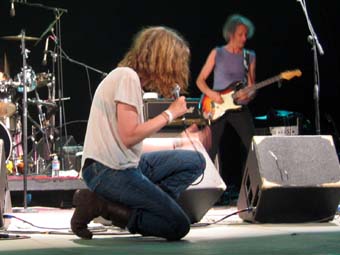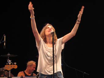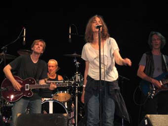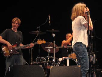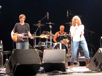 Et bien ce soir, mes craintes se sont vite envolees (des qu'elle est montee sur scene en fait) et une nouvelle fois je me suis regale ! Contrairemnt a Iggy Pop par exmple qui m'a servi a un an d'intervalle (a Randall Island et a l'Ile du Gaou) deux shows certes dynamiques, mais tellement huiles et identiques (morceaux joues, moment ou il monte sur l'ampli de gauche, moment ou il fait monter le public sur la scene ...), que l'on peut legitimement se demander si l'on assiste a une performance sportive ou a un concert donne avec passion ...