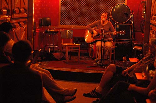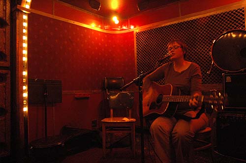 A 23h petantes (aaaah comme cette ponctualite musicale va me manquer ...) elle attaque. Seule avec sa guitare et sa voix, servie par un tres bon son, elle a pu presenter une dizaine de ses morceaux. Comme sur ses deux premiers disques, il s'agit de tres jolies ballades dans un anglais parfait.
