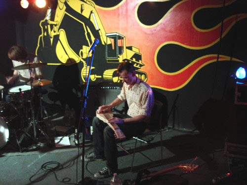 Il nous régale de pas de danse à la con : pied droit derrière, pied gauche derrière, etc...Et finit même par s'affaler sur son ampli dans une position cartoonesque. Pas grand monde danse, mais à l'applaudimètre on sent bien que le public est dans leur poche.