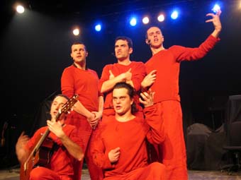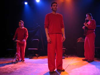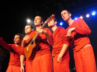 Ils sont cinq garçons en pyjama rouge. Seuls sous les spots avec deux guitares et un charley, ils nous offrent, peu avares de leur énergie, un concert humoristique, plutôt... La suite