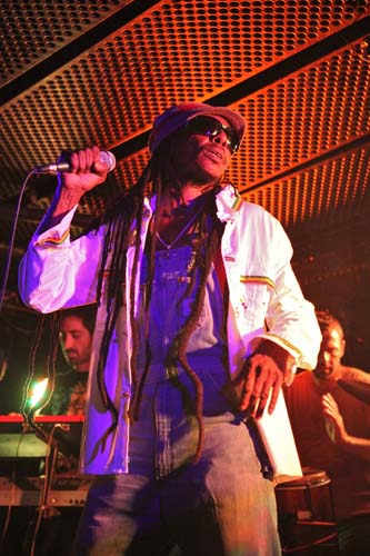 La salle est bien remplie à présent, on est bien 150 personnes maintenant, les jeunes sont là, quelques anciens aussi et bien sûr quelques rastas sont présents. Ils sont 6 sur scène avec une demoiselle au clavier. D'entrée de jeu, je suis littéralement séduit par la voix de Rod Anton qui chante en anglais et qui possède un grain savoureux tout droit sorti d'un autre temps. Je pense parfois à la voix du leader de Groundation Harrison qui comme lui est blanc et c'est d'autant plus bluffant. J'apprécie beaucoup ce que j'entends, les morceaux sont bien ficelés et le backing band The Ligerians assurent. J'aime beaucoup le jeu des guitaristes et leur apport vocal. Le son du groupe joue avec la puissance et la chaleur du roots.