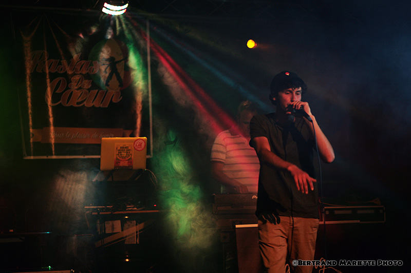 Je suis étonné de voir que sa musique a une forte teinte hiphop, bien moins que le ragga jungle qu'ils nous avait proposé à la Vallée verte. Mais ça n'en est pas moins authentique, travaillé et spontané.