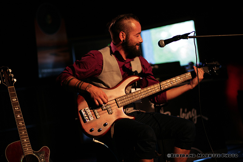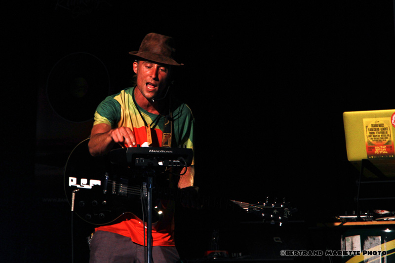 C'est pieds nus qu'il chante et joue des ses instruments et ponctue ses compos en communiquant naturellement avec le public. Du son positif débordant d'espoir.