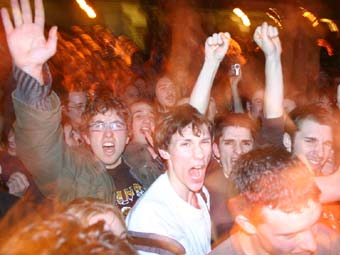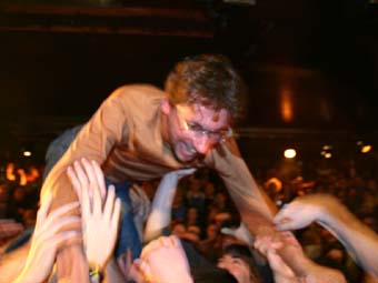 Pas loin de moi, un adolescent en crête et tee-shirt Muse (?) pique un fard. De toute façon, tout le monde aura droit à sa vanne et tout le monde sera content. Didier conspue les excités du premier rang et traverse la salle pour chanter un moment devant la table de mixage, ensuite au moment d'un trou de mémoire, c'est au tour des filles : "A chaque fois qu'il y a une bonne meuf dans le public, j'oublie les paroles, et, je ne comprends pas, ça me le fait quand même ici."