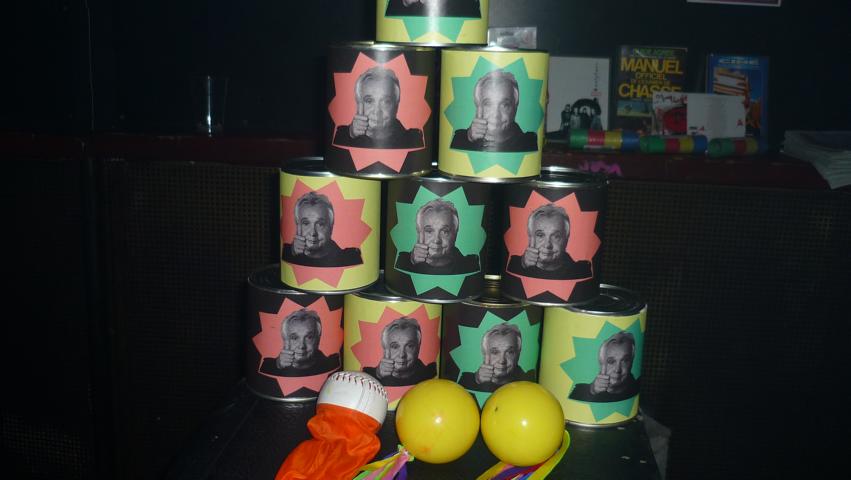 Il y avait aussi un chamboule-tout avec des boites de conserve à l'effigie de Michel Sardou, dont un improbable duo avec Mireille Darc a inspiré le nom du groupe Requin Chagrin qui va suivre.