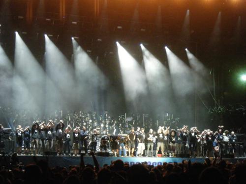 Et lorsque s'éteignent les dernières salves et que la scène se rallume, c'en est déjà fini pour cette nouvelle édition des Eurockéennes. "Music in Paradise" ? Pas loin en effet ! Une trentaine d'intermittentEs monte néanmoins sur scène pour nous saluer et nous rappeler ce que le spectacle vivant, celui-ci y compris, leur doit. Si l'on est aux petits oignons tout le week-end sur la presqu'Ile, c'est bien parce qu'ils doivent cavaler comme des rats avant, pendant et après les trois jours... Et on ne peut certes pas soupçonner l'organisation d'un festival qui dure trois jours par an, d'abuser de travailleurs sous ce statut. Contrairement au groupe France Télévisions, propriété de l'Etat, par exemple... Leur porte-parole tente donc de faire passer l'idée, à des jeunes spectateurs souvent peu politisés, qu'ils sont aussi concernés par ce problème, et nous donne rendez-vous l'année prochaine. Avec le plus grand plaisir, mec, et merci pour tout !