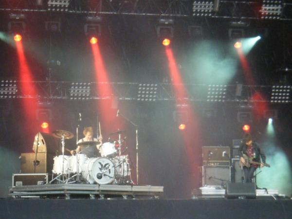 Question musique, on commence par The Black Box Revelation, sous une vilaine petite pluie, pas rancuniers qu'ils nous aient planté à Marseille il y a quelques mois. Comme les vrais duos de tueurs, ils sont bien 2 et pas un de plus, sonnant presque comme les Black Keys dans les moments blues (nos préférés) : à force d'aligner des soli graisseux et costauds et les titres ultra-efficaces (I think I Like You, meilleure que l'intégrale de l'oeuvre d'Oasis), le duo parvient à chasser les nuages et à mettre une belle ambiance. High on a Wire et autres Do I know You achèvent de nous mettre en joie, et en soif. Set your head on Fire ? Vous y avez pratiquement réussi, messieurs, avec votre belle ration de guitare saturée et batterie violentée : bravo, tout le monde au bar et/ou aux toilettes sèches !