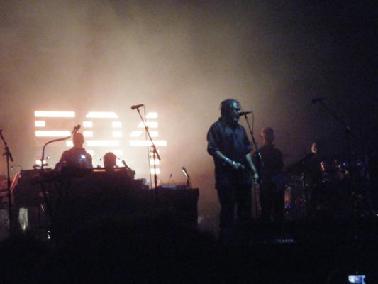 La belle Martina Topley-Bird est venue ouvrir le bal avec la très nerveuse Babel, puis le géant Grant Marshall avec la sépulcrale Risingson, et après eux, Horace Andy ("what can I say ? This man is a fucking legend !" commente Robert del Naja qui ne sait plus comment le présenter, à force) et la magnifique Girl I Love You, qui sonne déjà comme un classique. Peut-on rêver meilleur trilogie pour débuter un concert ? Le set continue avec un passage tellurique : Future Proof, que chante 3D de sa voix nasale/atonale si étrange, avant de danser et s'éclater comme un fou.
